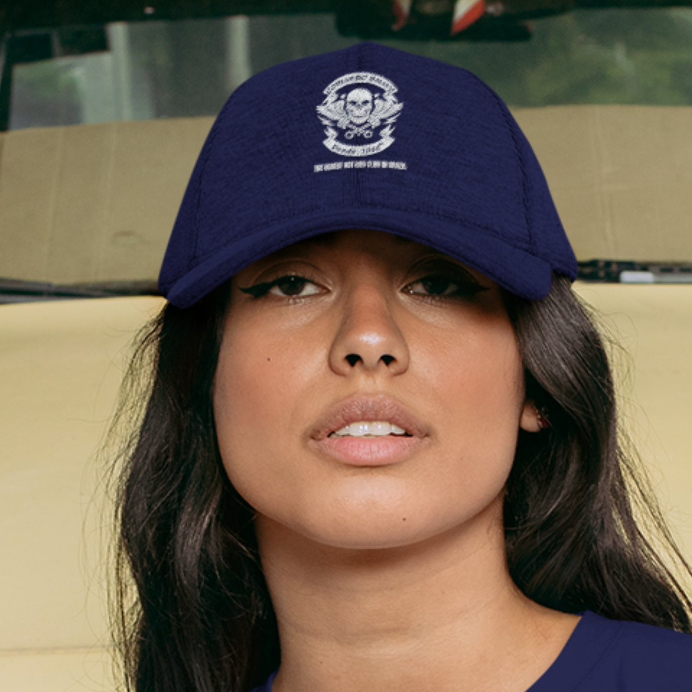 Apresentamos o boné em tecido estampado com o logo do COMANDO BRAVO, perfeito para os aficionados por Hot Rods e estilo clássico.