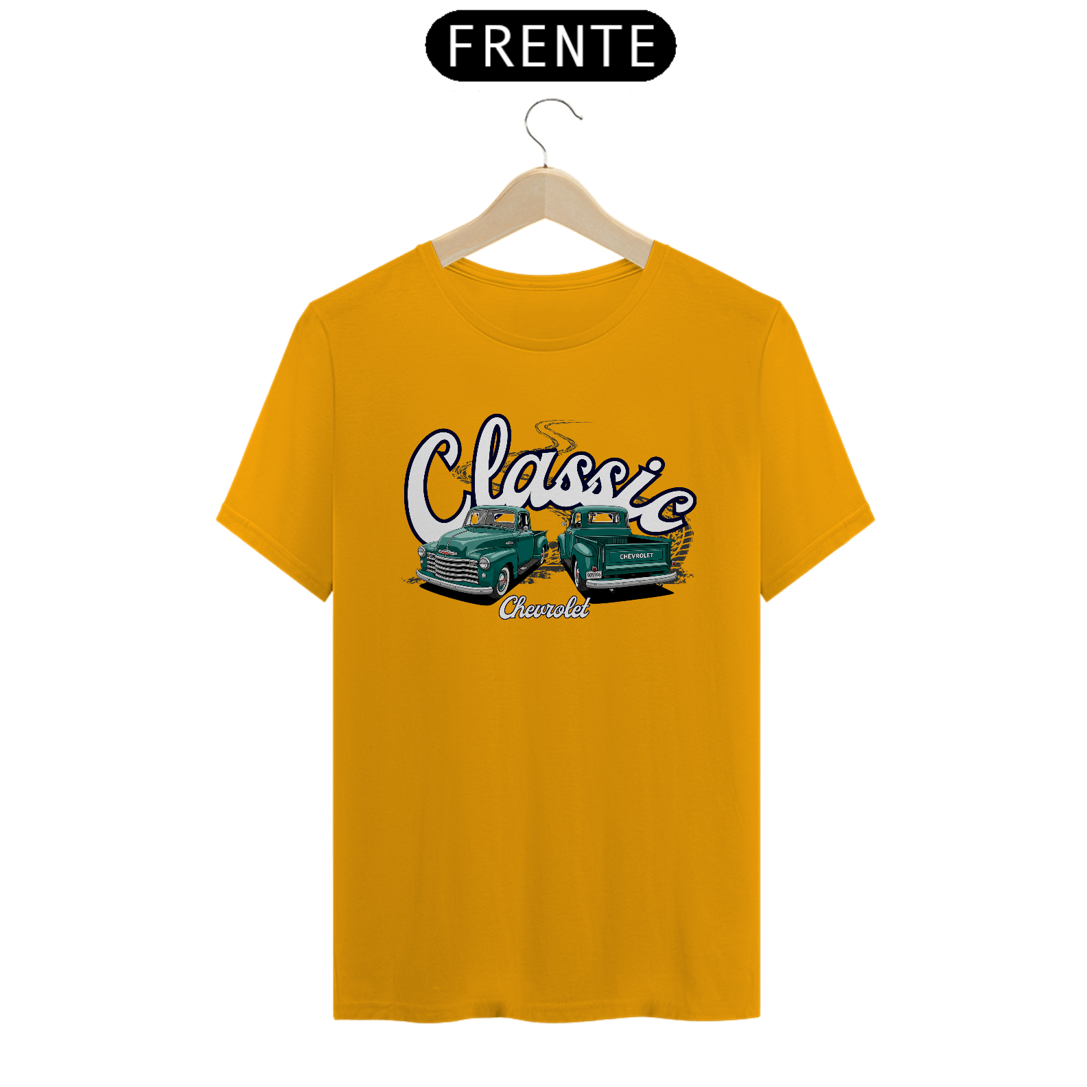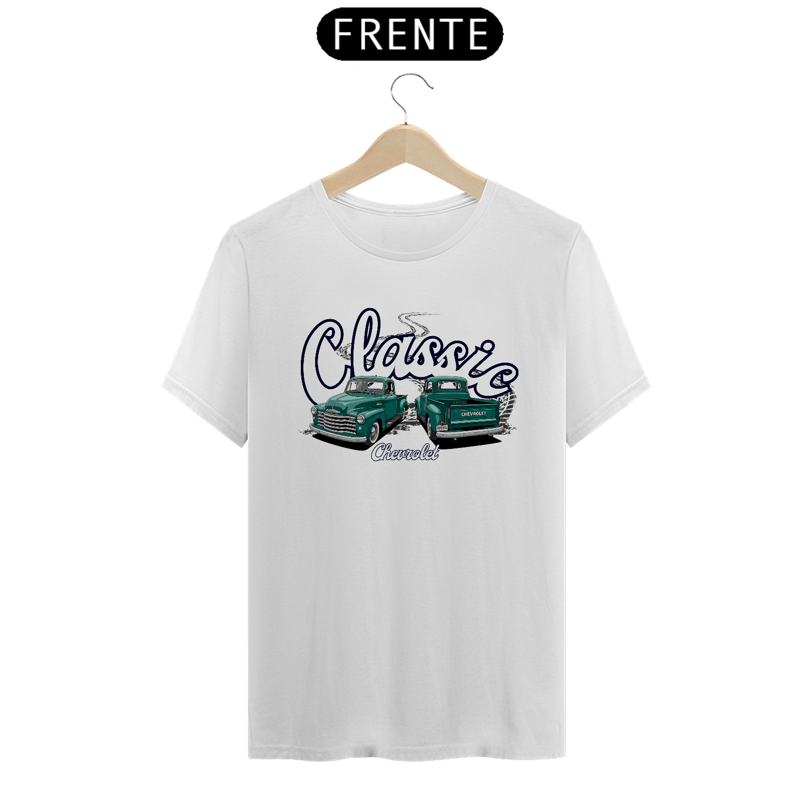Para os apaixonados pela lendária “Boca de Sapo”, essa camiseta traz uma homenagem da imponente Chevrolet 3100 vista de frente e da traseira robusta da pickup que marcou gerações.