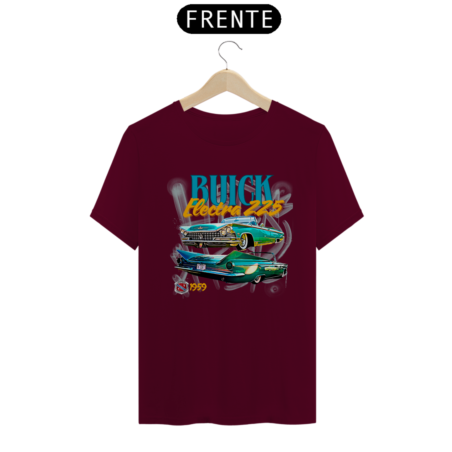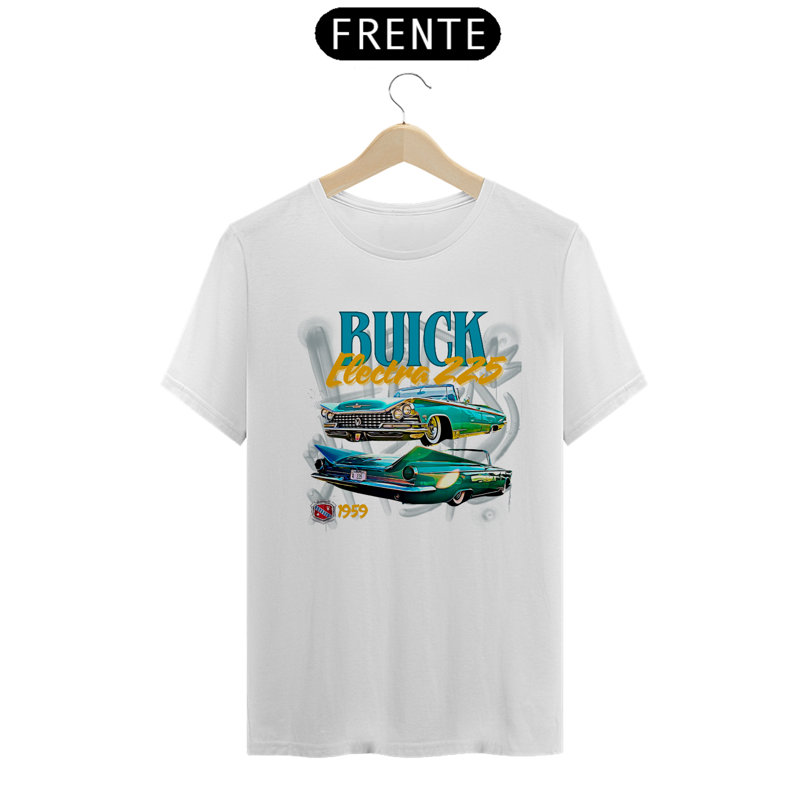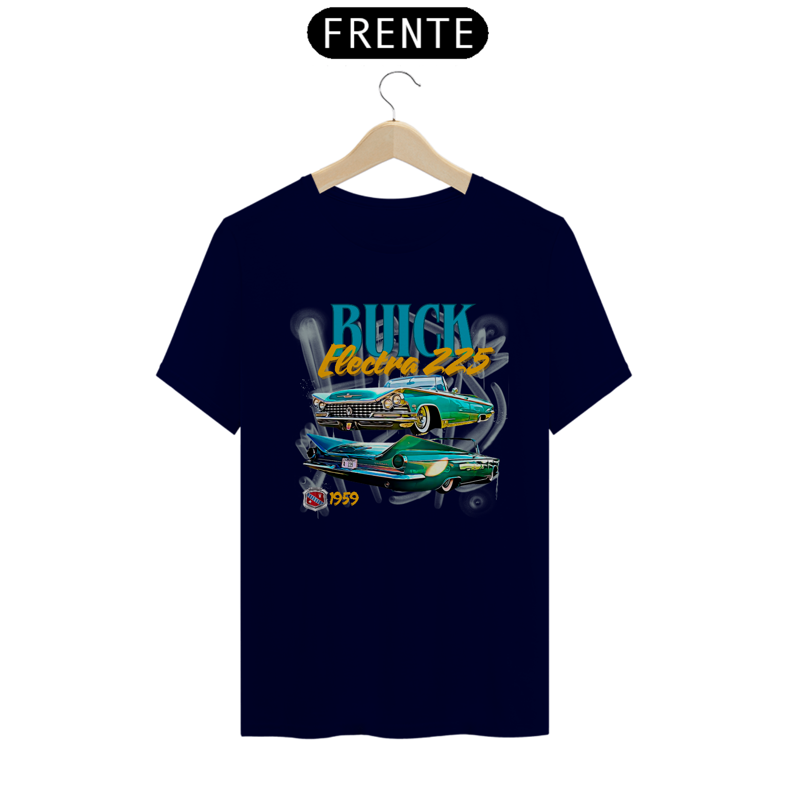 A estampa apresenta o icônico Buick Electra 225 do ano de 1959, um símbolo de luxo e sofisticação da era dourada dos automóveis.