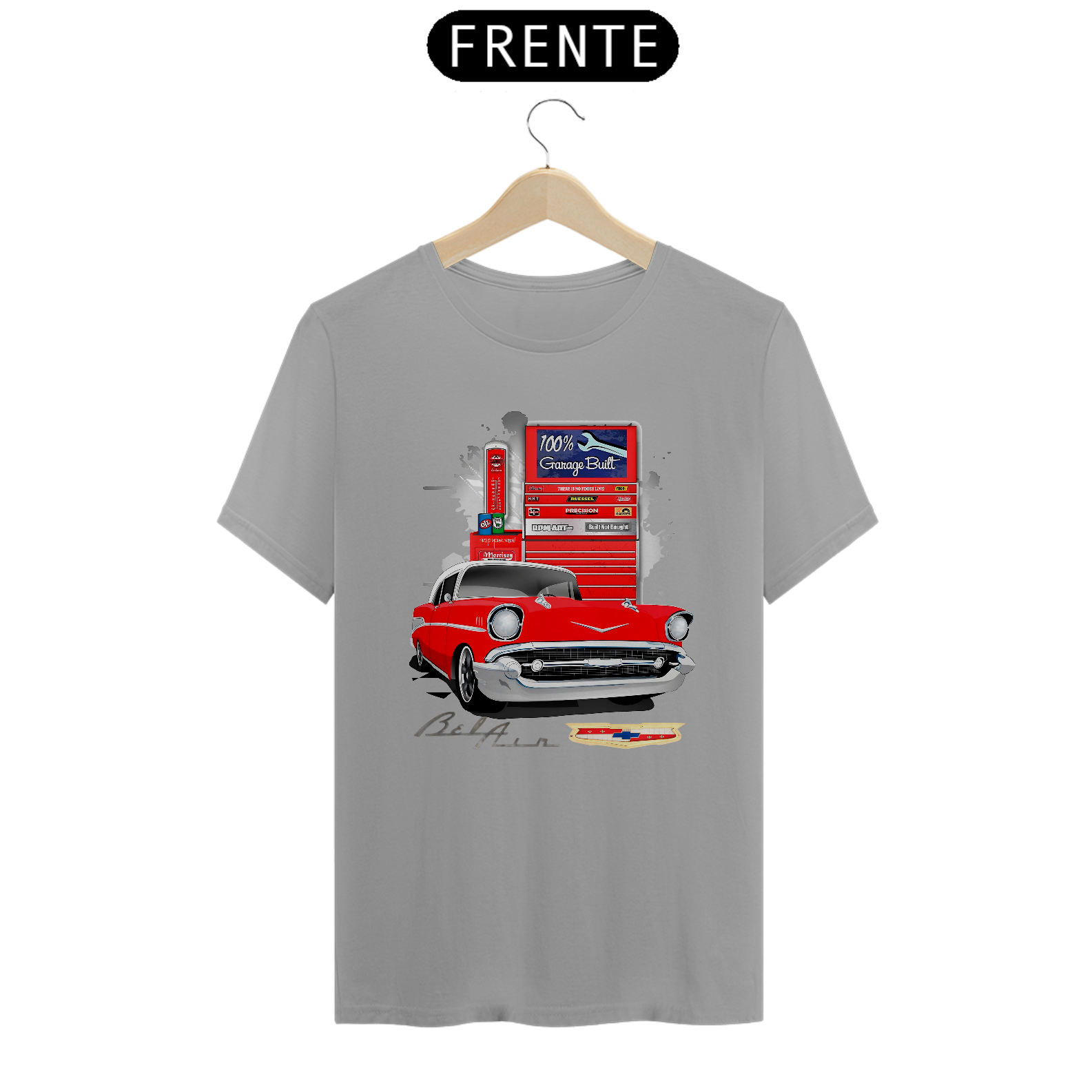 Esta camiseta destaca uma estampa vibrante do lendário Chevrolet Bel Air, um ícone de design e inovação automotiva.