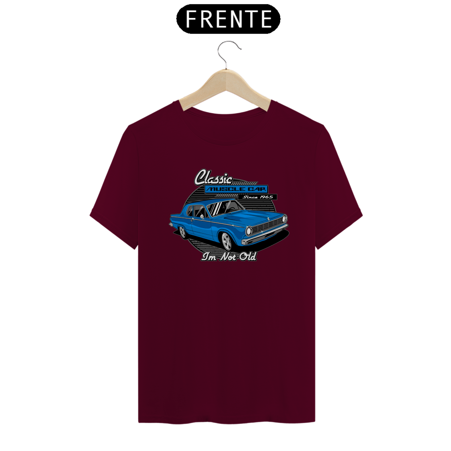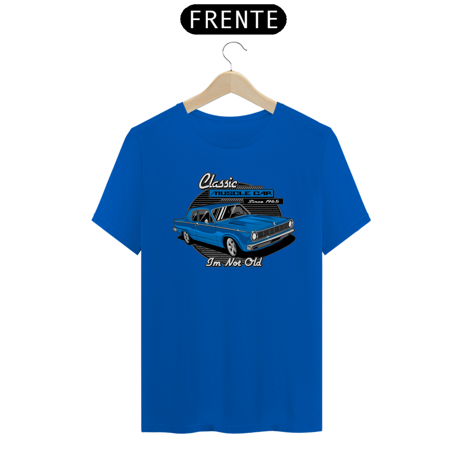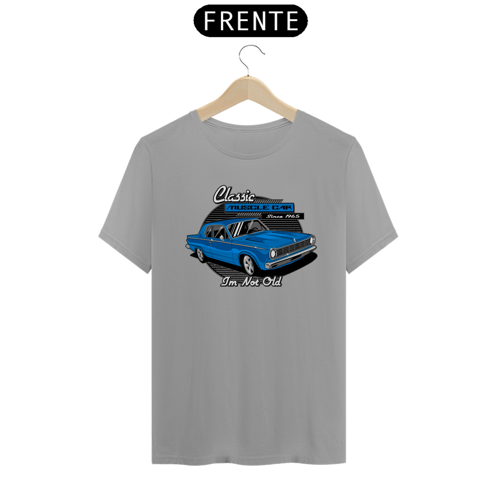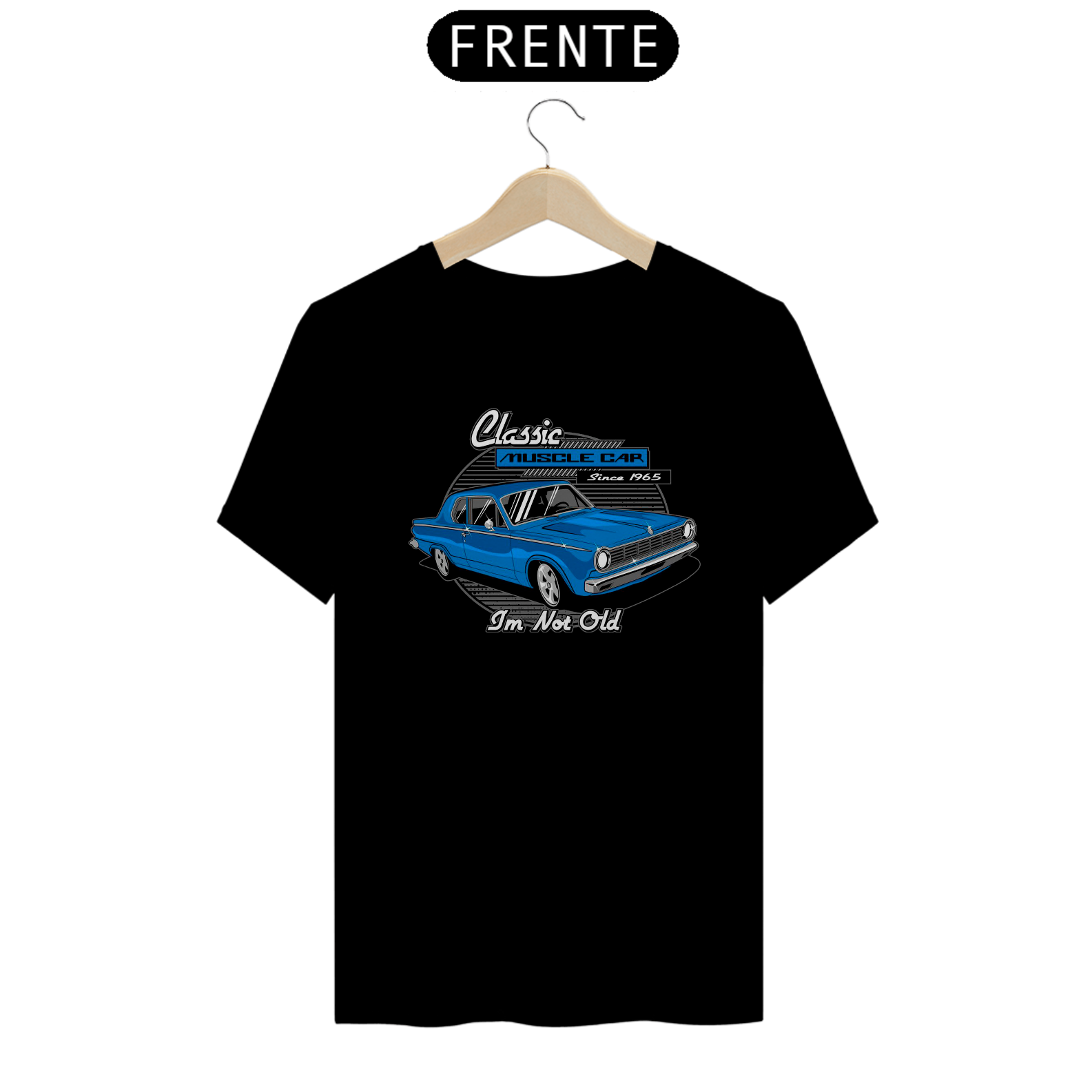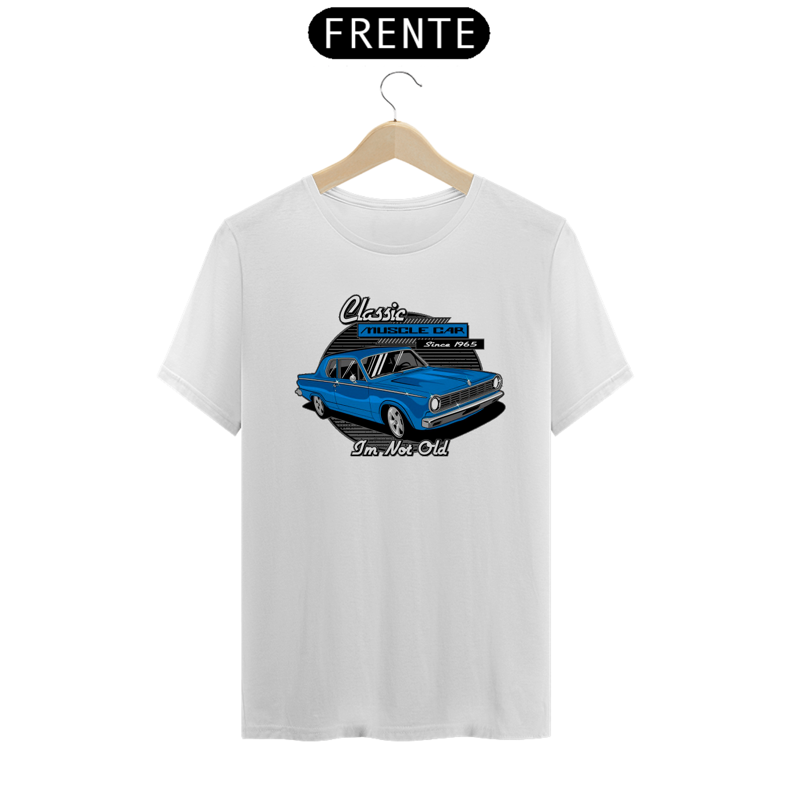 Esta peça é dedicada aos entusiastas dos icônicos Muscle Cars, com uma estampa vibrante e a frase que desafia o tempo: "Classic Muscle Car - I'm Not Old".