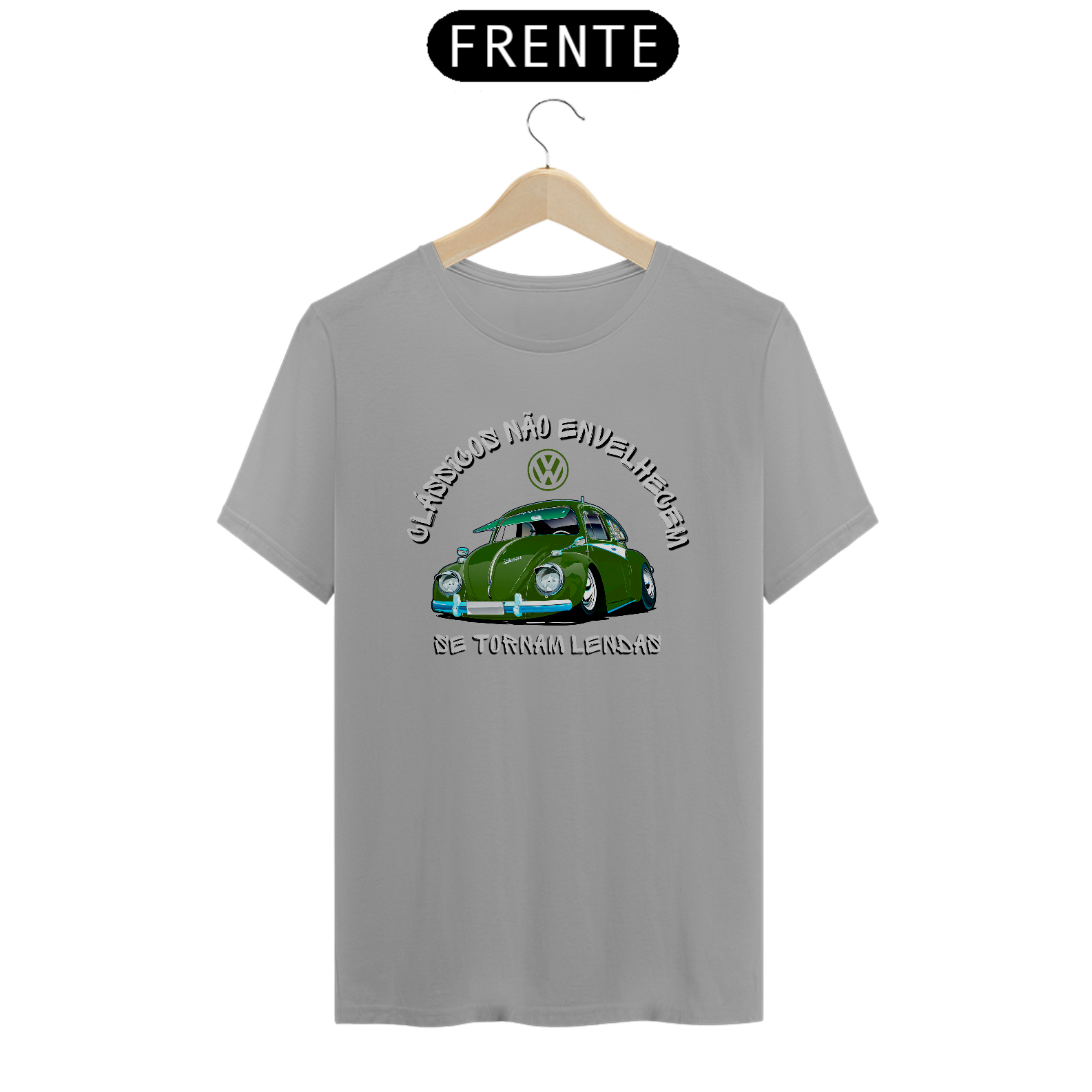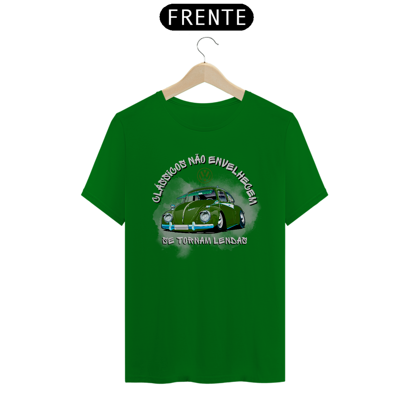 Apresentamos a camiseta perfeita para os fãs de carros clássicos e amantes do lendário VW Fusca. Nossa camiseta "Clássicos Não Envelhecem, Se Tornam Lendas" traz uma estampa exclusiva de um VW Fusca verde, acompanhado de uma frase que celebra a atemporalidade dos automóveis clássicos. A estampa apresenta um VW Fusca verde custom, destacando seu design icônico e charmoso. A frase  junto complementa a imagem, reforçando a ideia de que os carros clássicos, como o Fusca, transcendem o tempo e se tornam verdadeiras lendas.