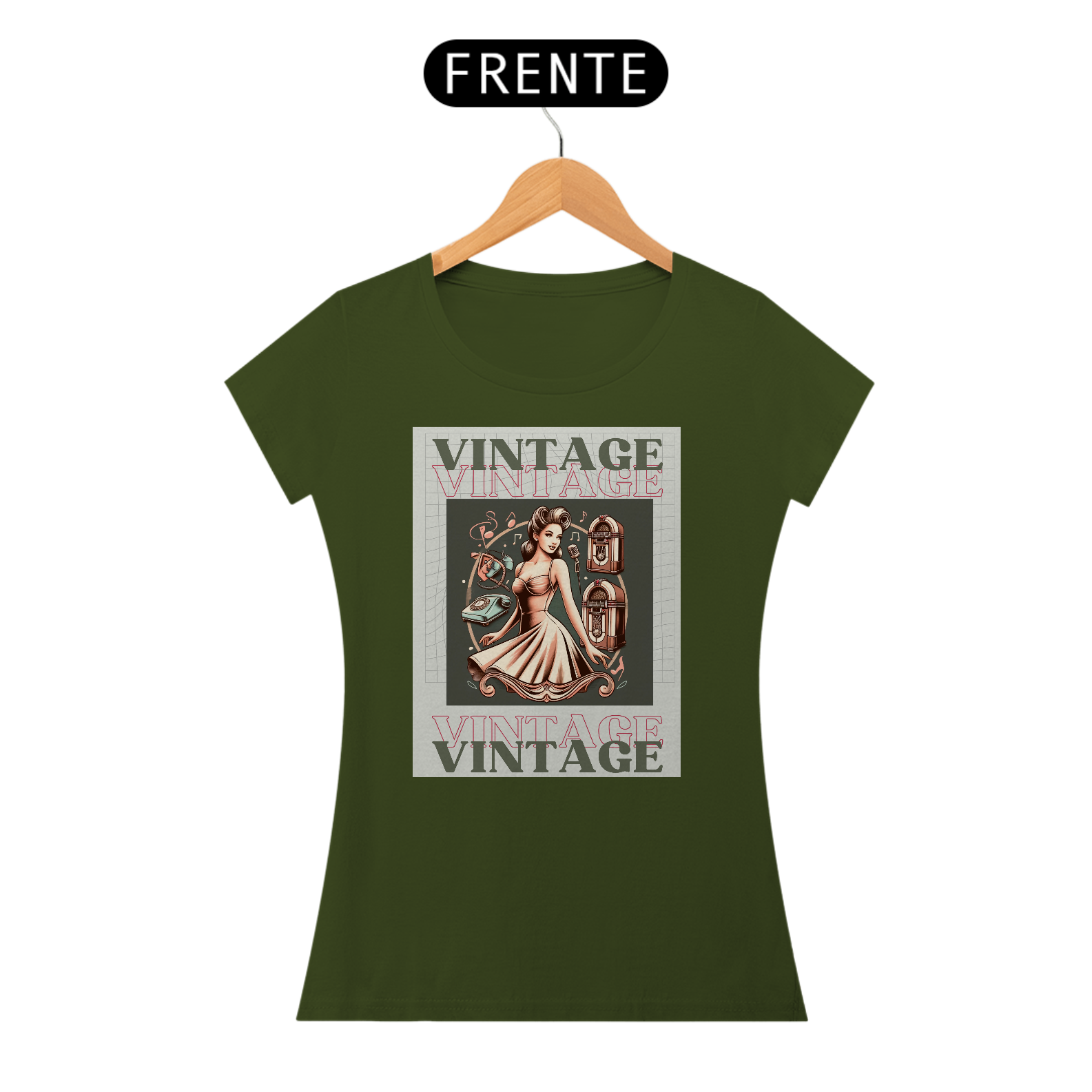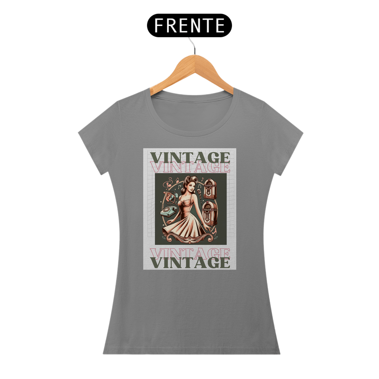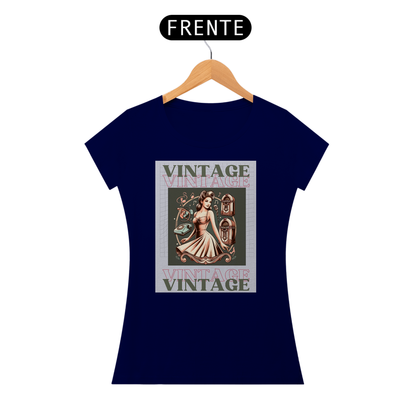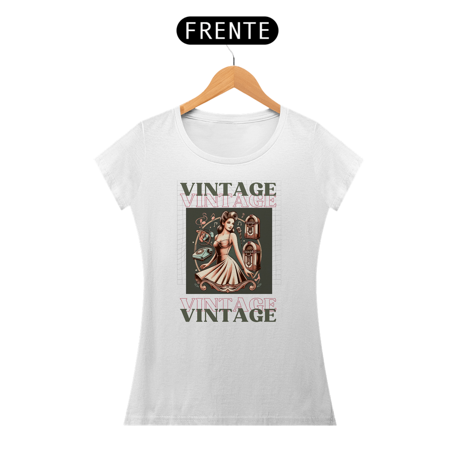 Com a frase "Vintage" em destaque, esta peça de roupa é uma ode ao charme atemporal que perdura ao longo das décadas.