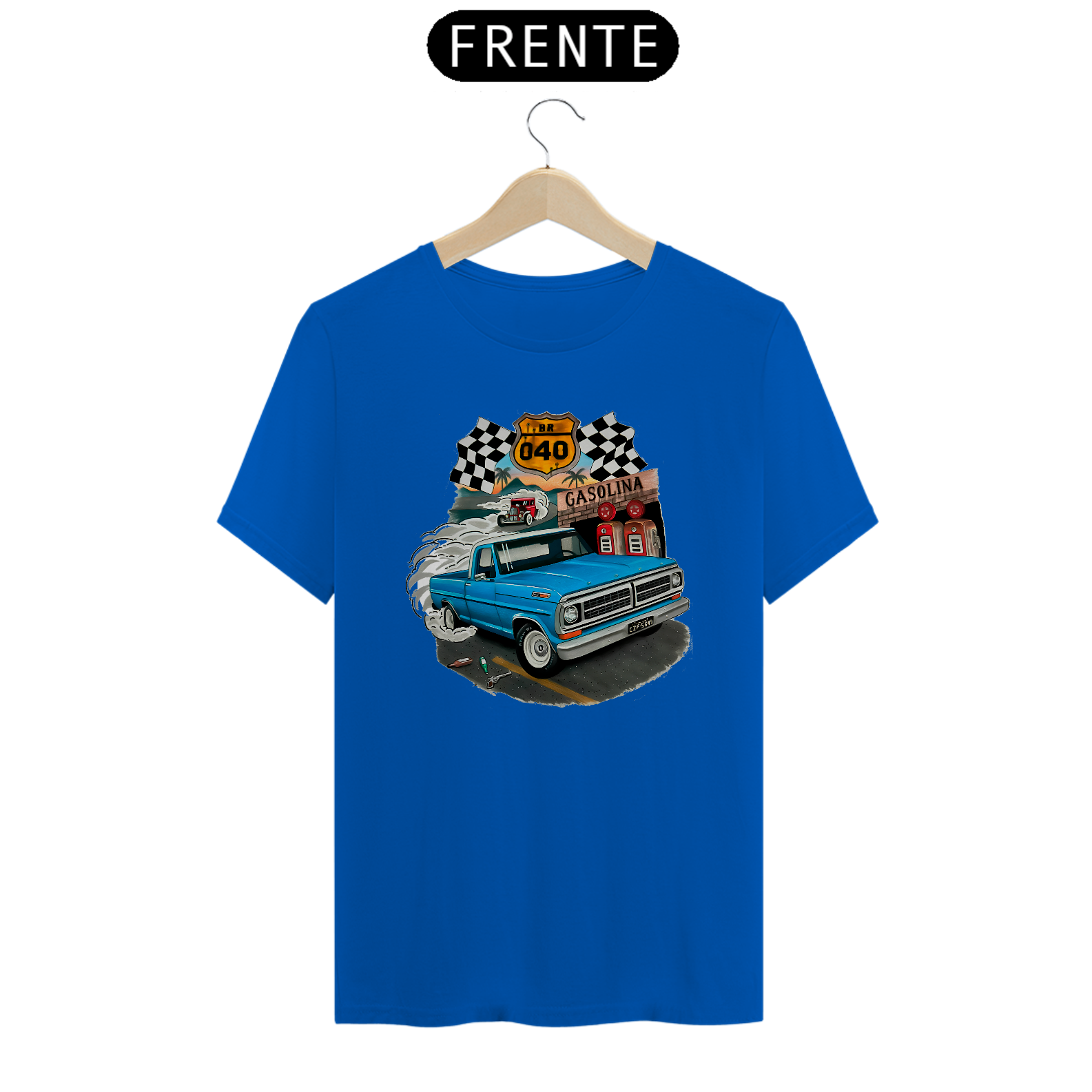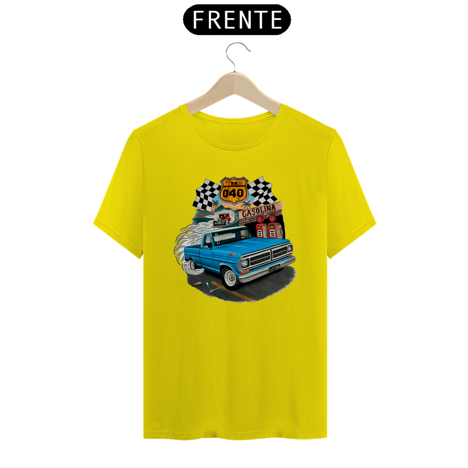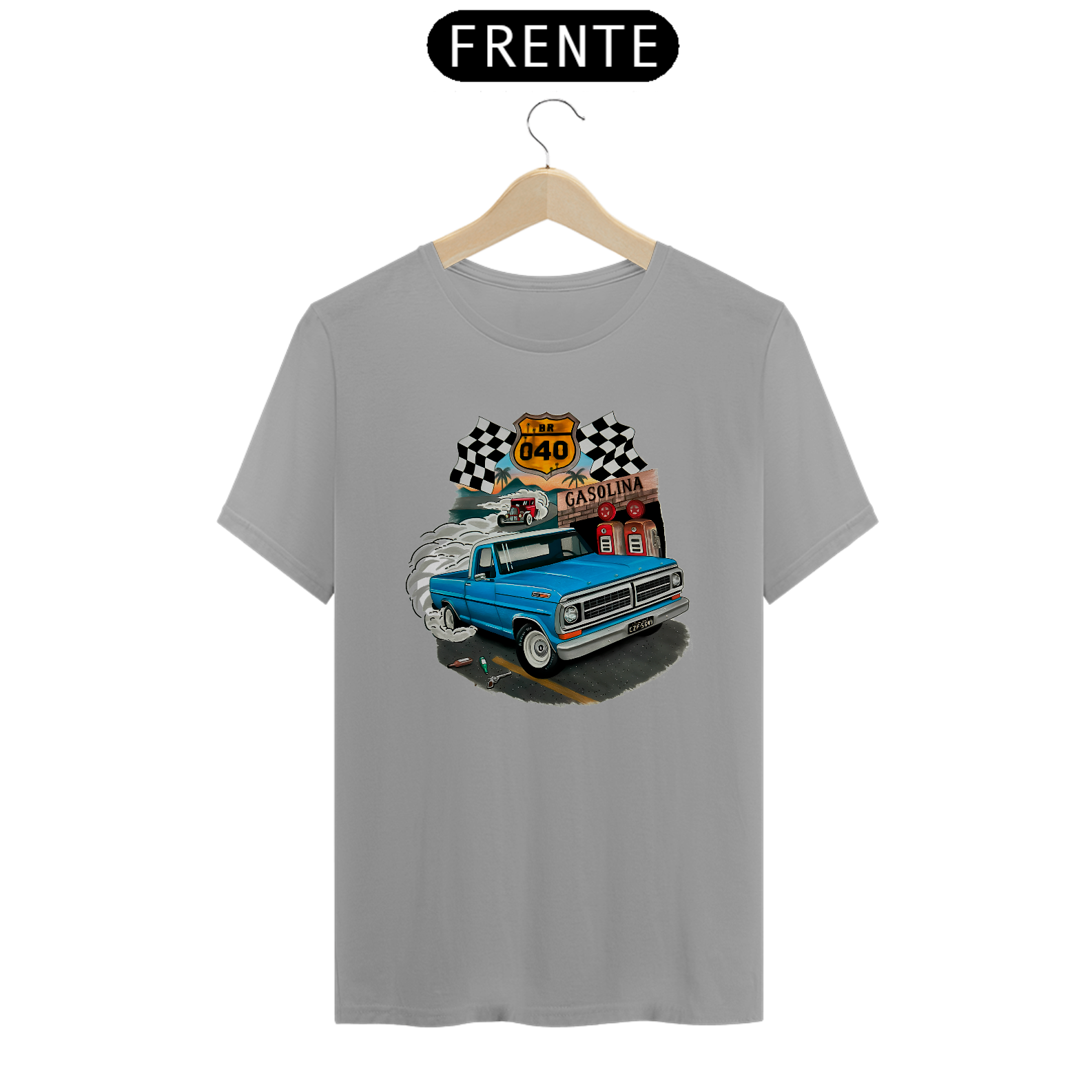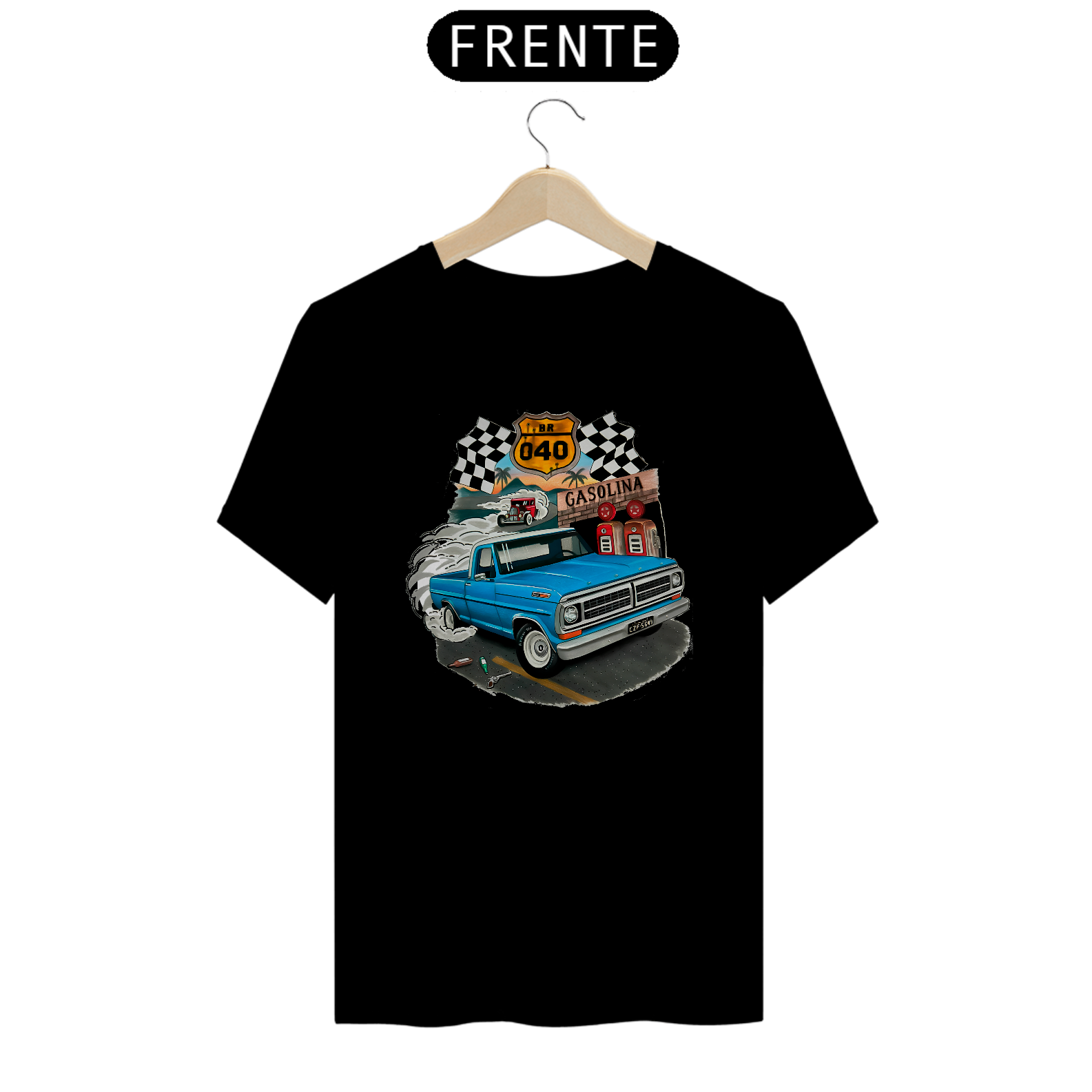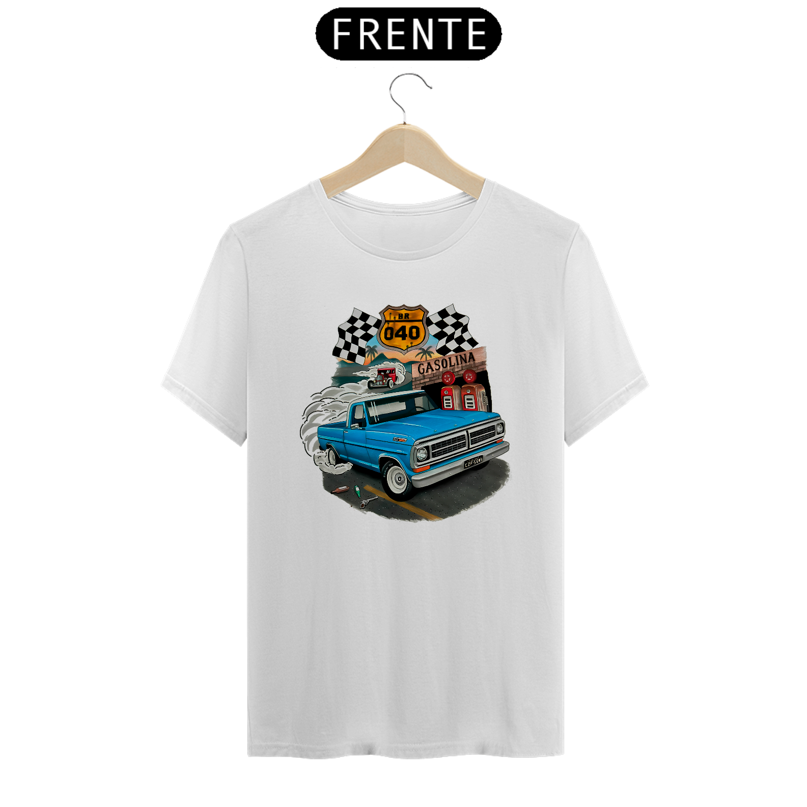 Camiseta Ford F100 Bumpside Celebre o espírito das estradas brasileiras com esta camiseta exclusiva, apresentando uma estampa detalhada de uma icônica Pickup Ford F100 Bumpside na lendária BR-040 com a arte do talentoso artista Gabriel Gaipo. Perfeita para entusiastas de carros clássicos e amantes das aventuras rodoviárias, esta camiseta é feita com material de alta qualidade, garantindo conforto e durabilidade. Vista-se com um pedaço da história automotiva e da cultura brasileira!