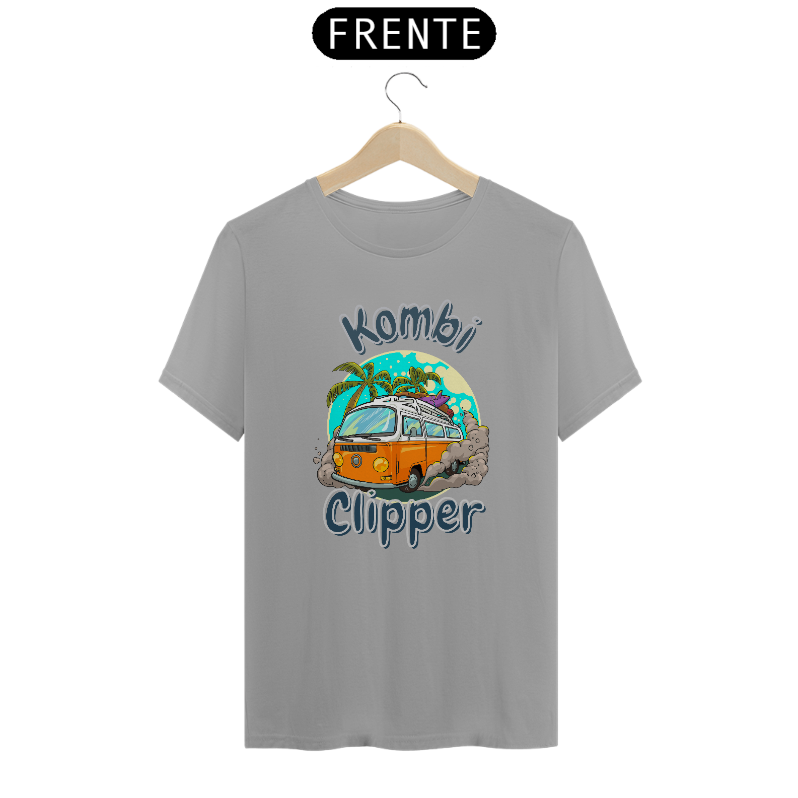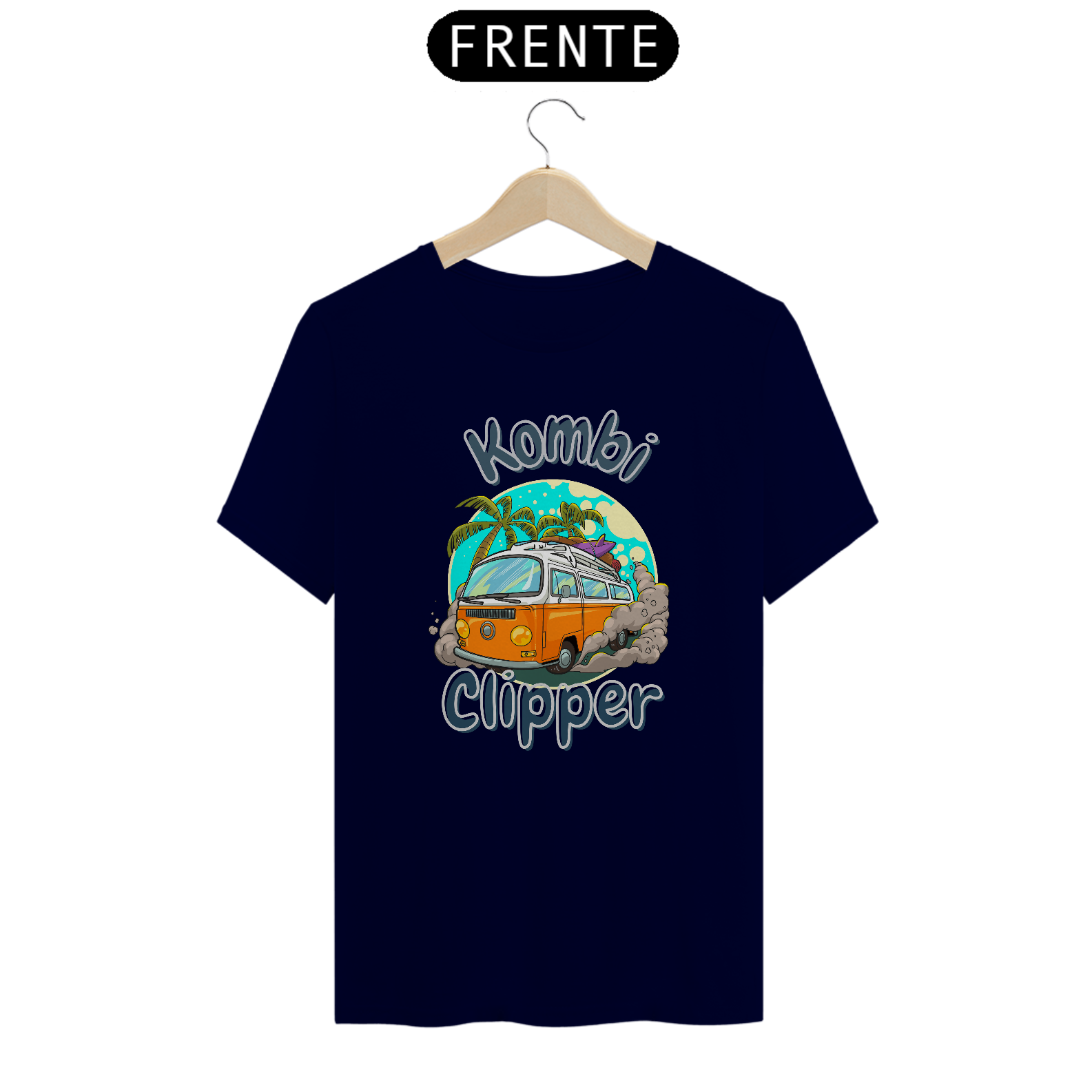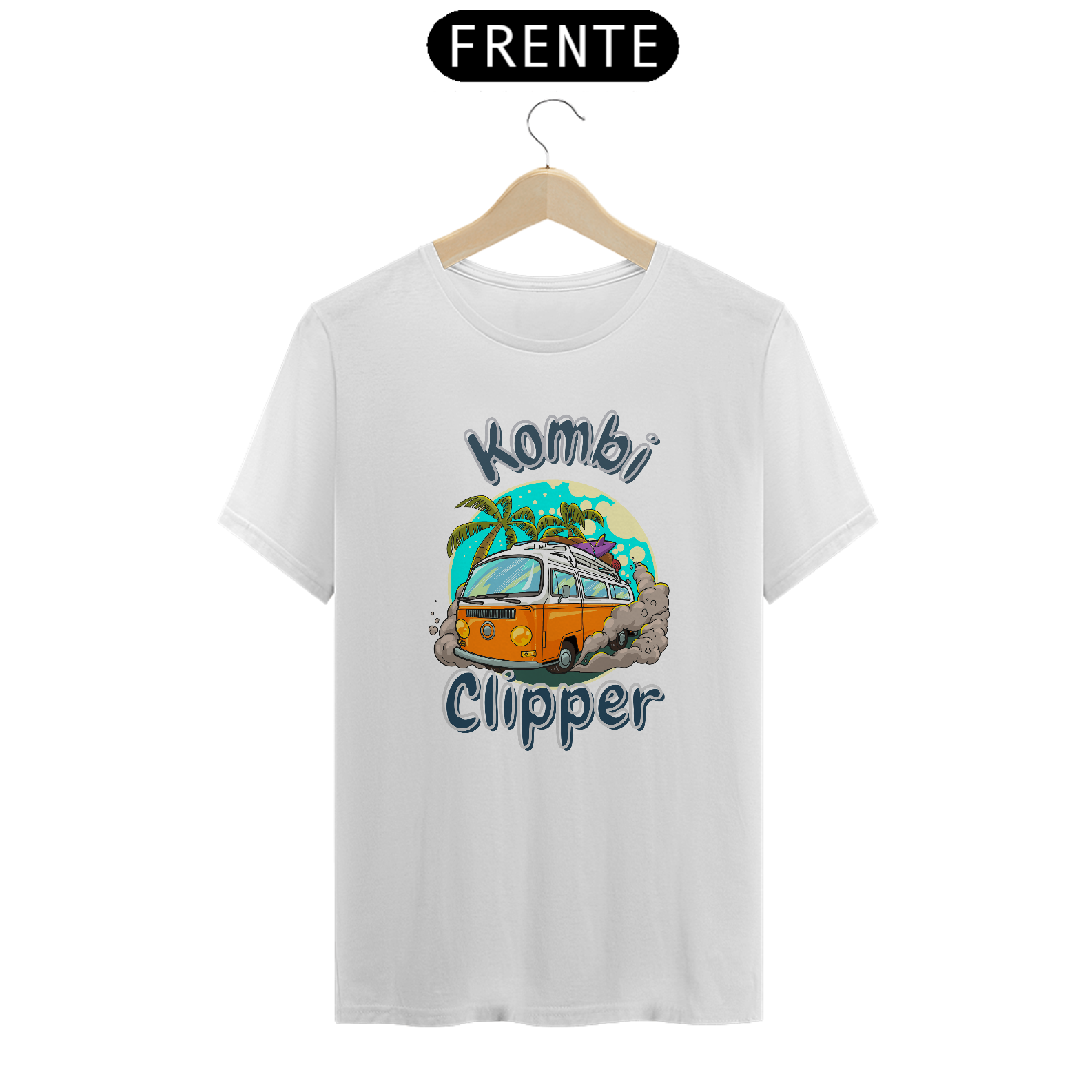 Com a frase "Kombi Clipper" destacada, esta camiseta é uma celebração ao design e à herança de um dos modelos mais amados da história automotiva e da cultura AIR COOLED.