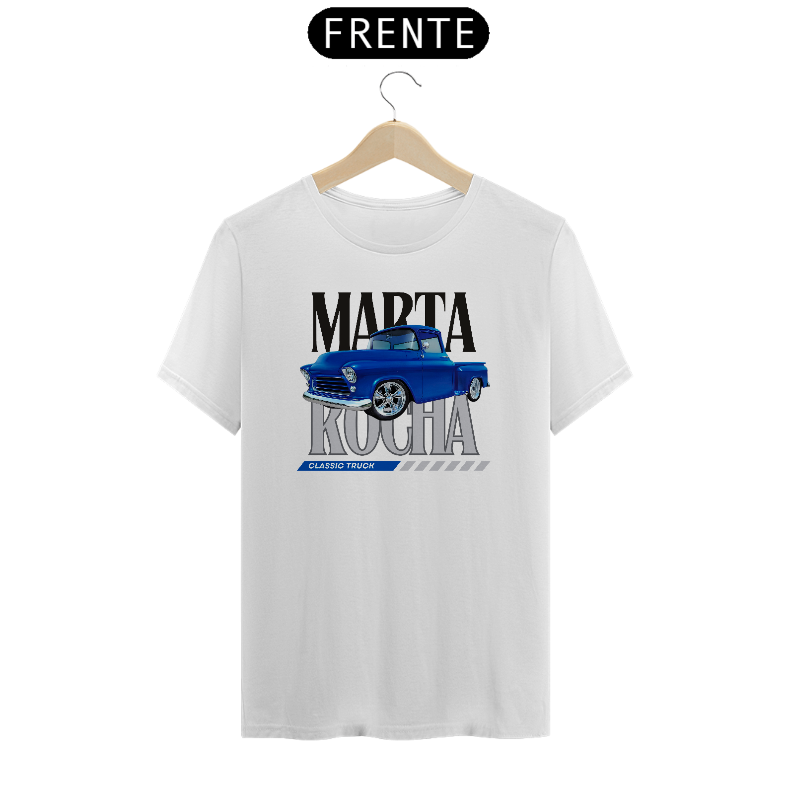 Esta peça única apresenta uma estampa detalhada da icônica Pickup Marta Rocha, capturando a beleza clássica e o estilo inconfundível deste veículo lendário.