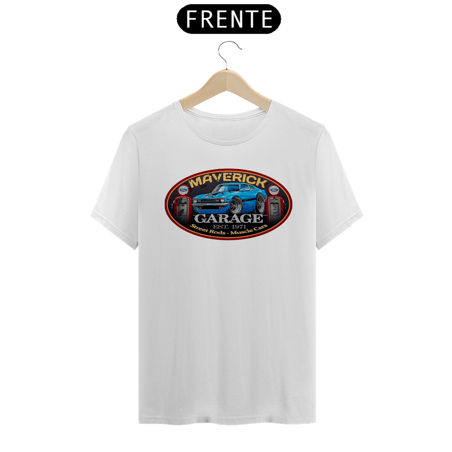 Descubra a perfeita combinação de estilo e nostalgia com a nossa camiseta "Maverick Garage".