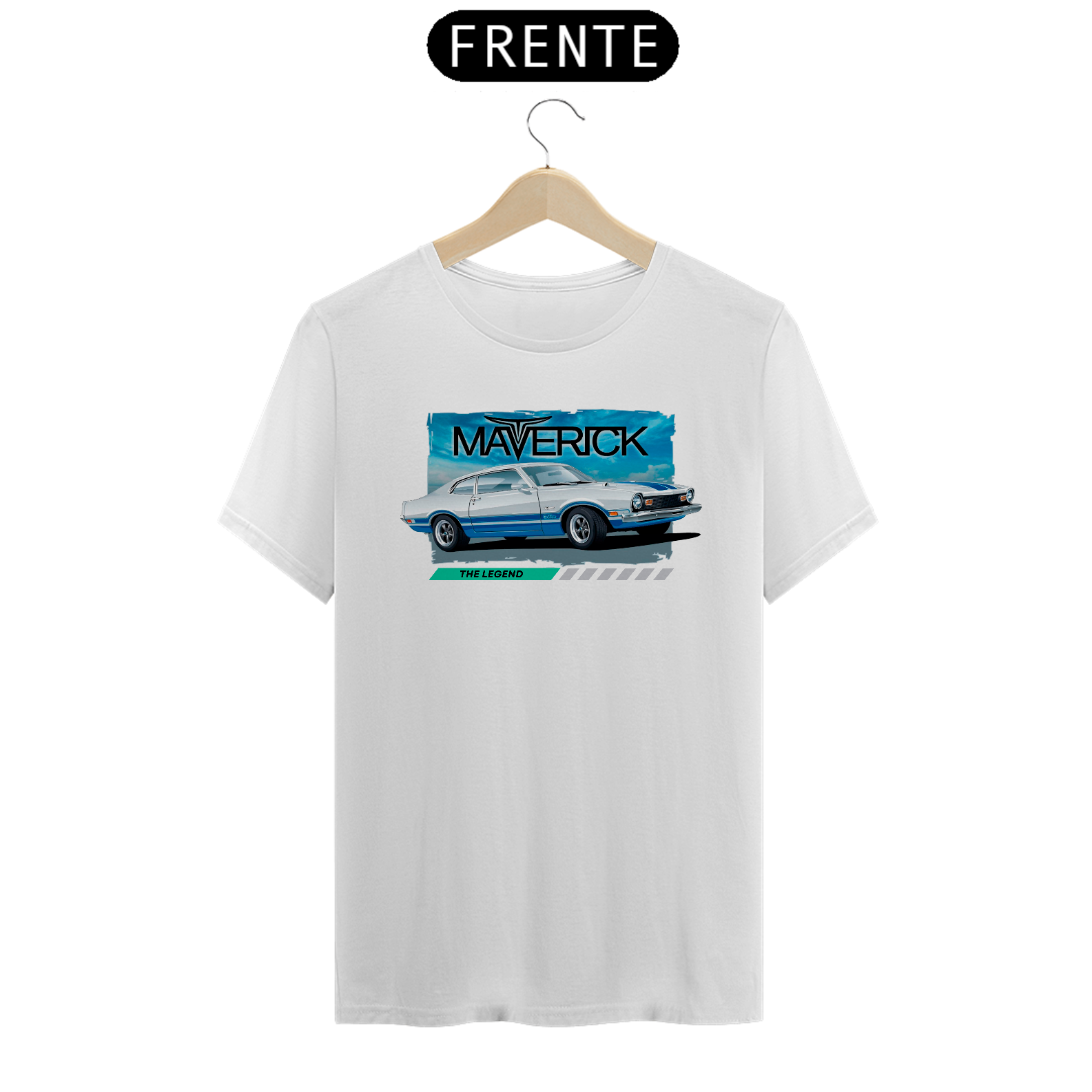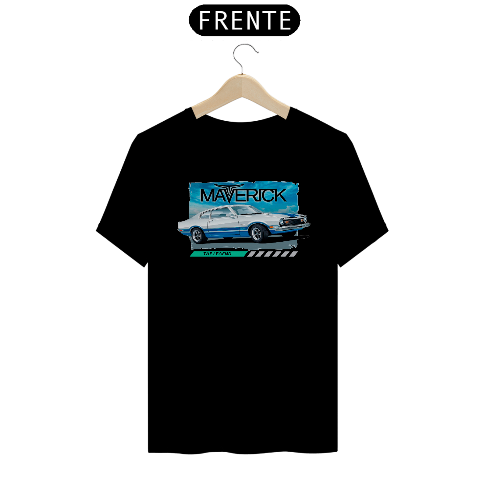 Esta peça é uma homenagem à poderosa e icônica Ford Maverick, com uma estampa que captura sua essência lendária e a frase que define sua grandiosidade: "The Legend".