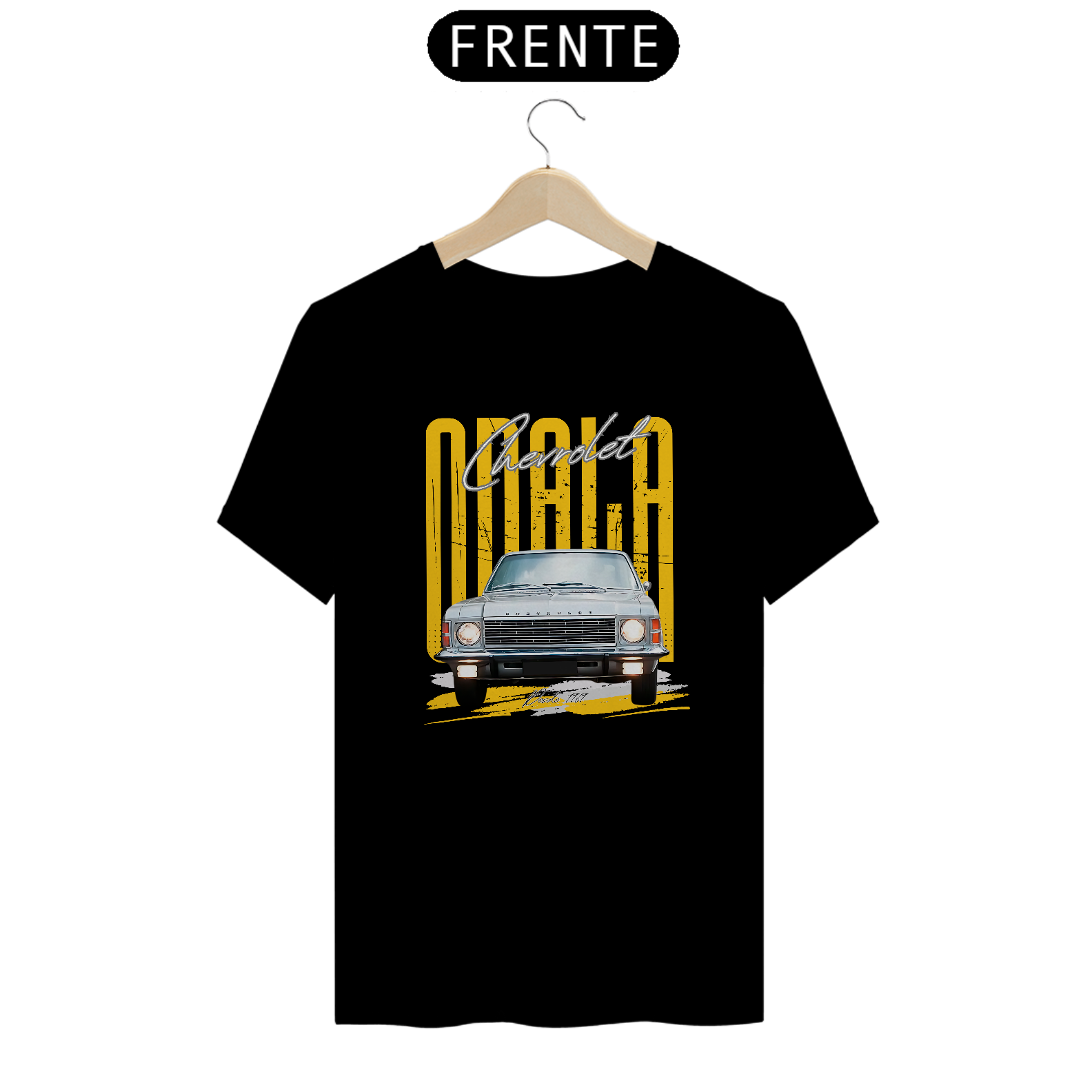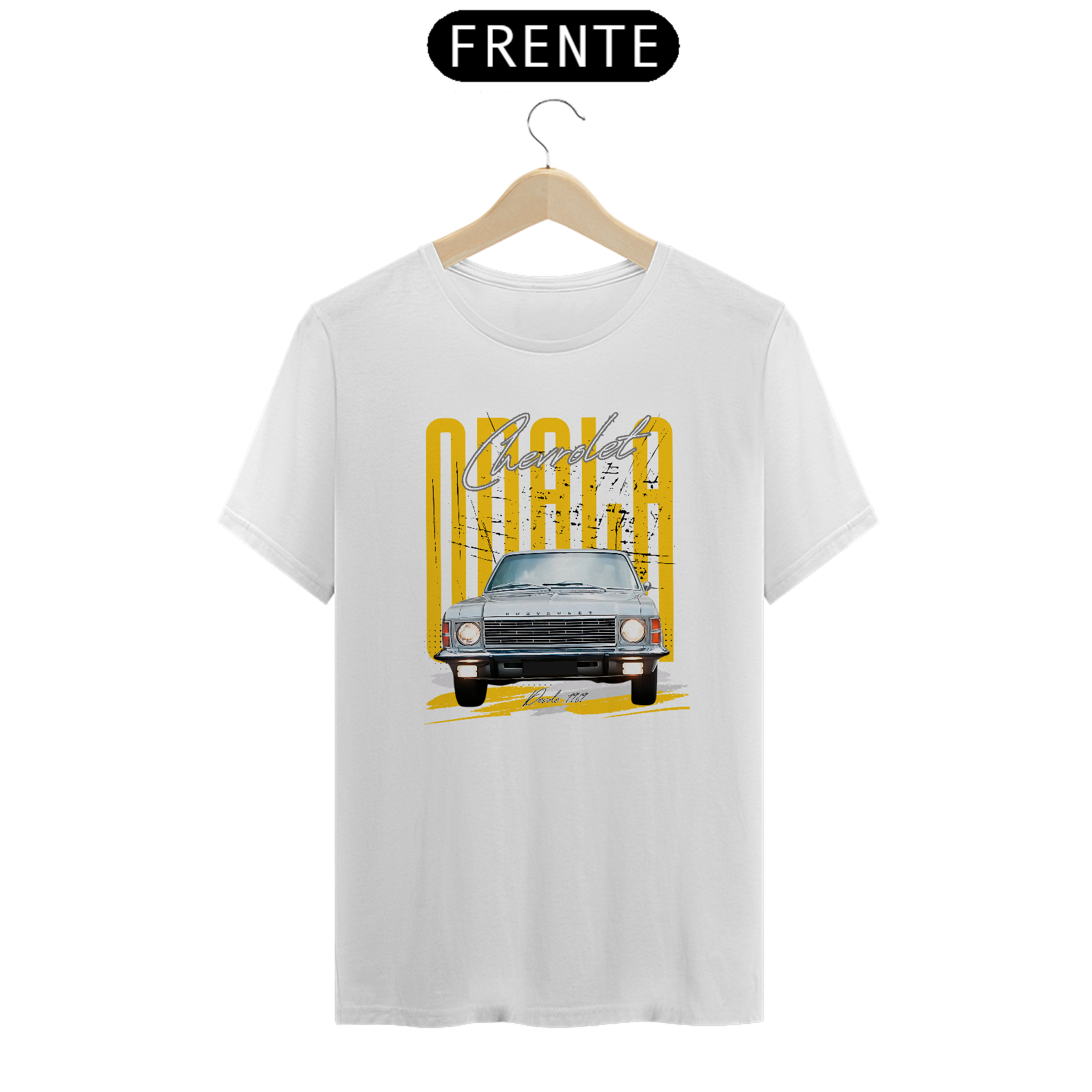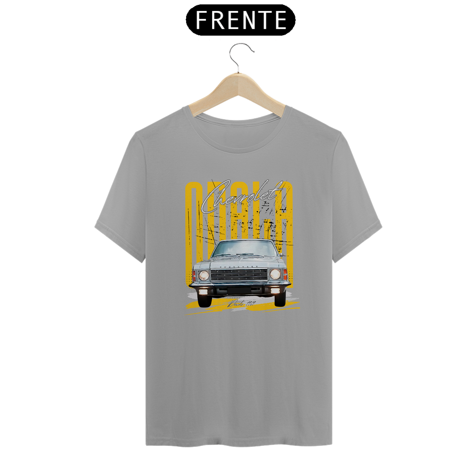 Reviva o estilo clássico dos anos 70 e 80 com nossa exclusiva camiseta estampada com o icônico Chevrolet Opala Comodoro de frente.