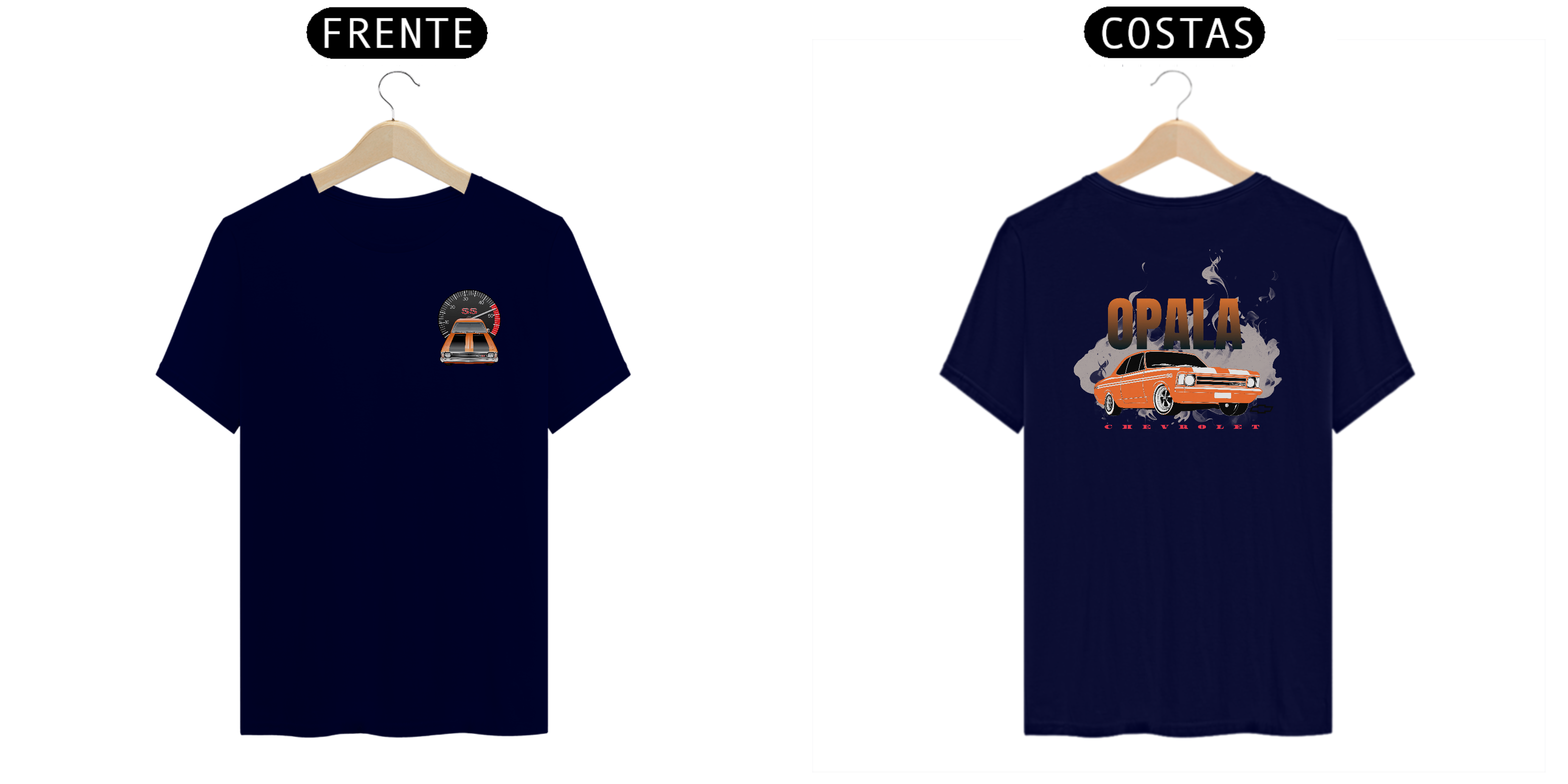 • Detalhe no peito: Um escudo estilizado com o logotipo do Opala SS e um conta-giros ao fundo, perfeito para dar um toque único e sofisticado à peça.