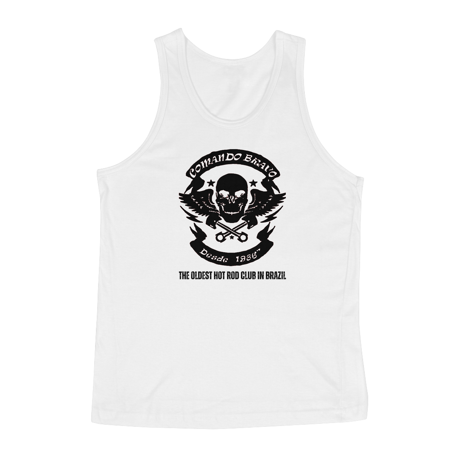 Destaque-se com a camiseta regata do COMANDO BRAVO, uma escolha ideal para os fãs de Hot Rods que buscam estilo e conforto nos dias mais quentes.