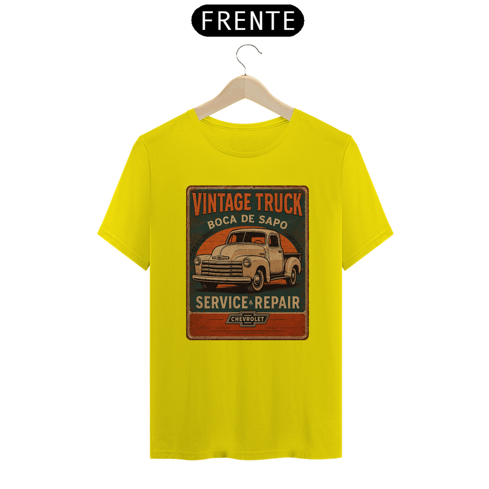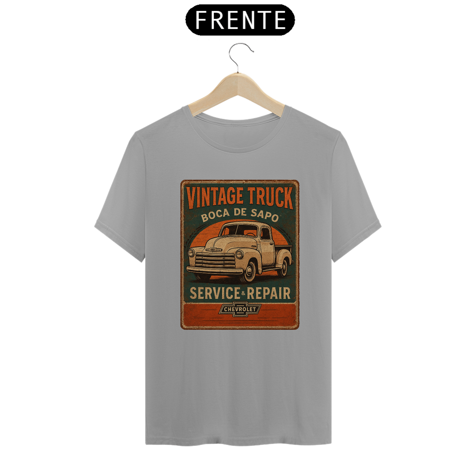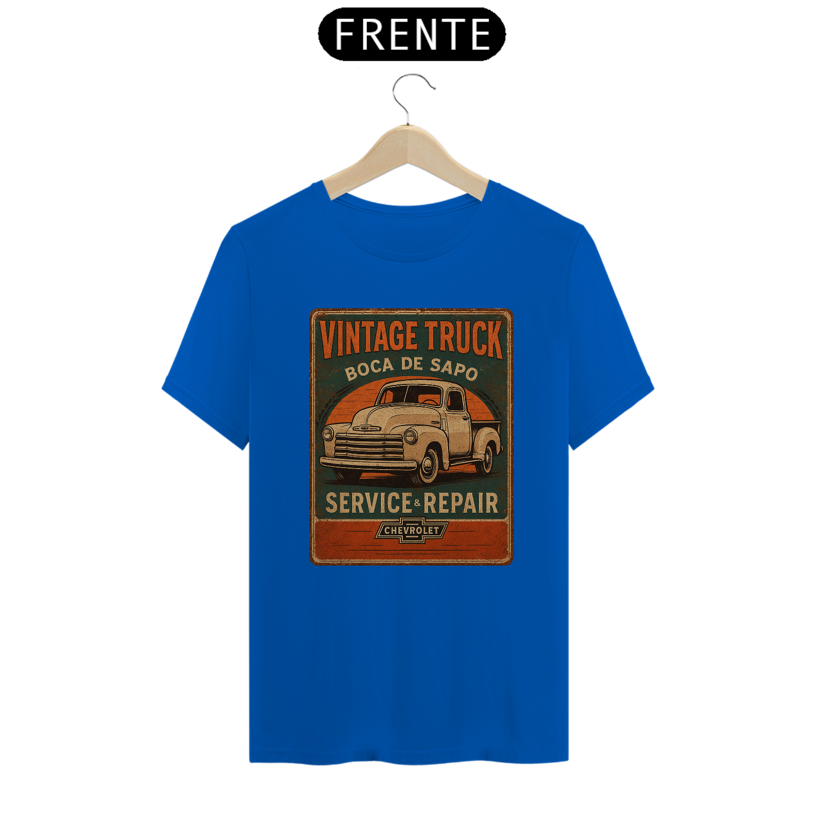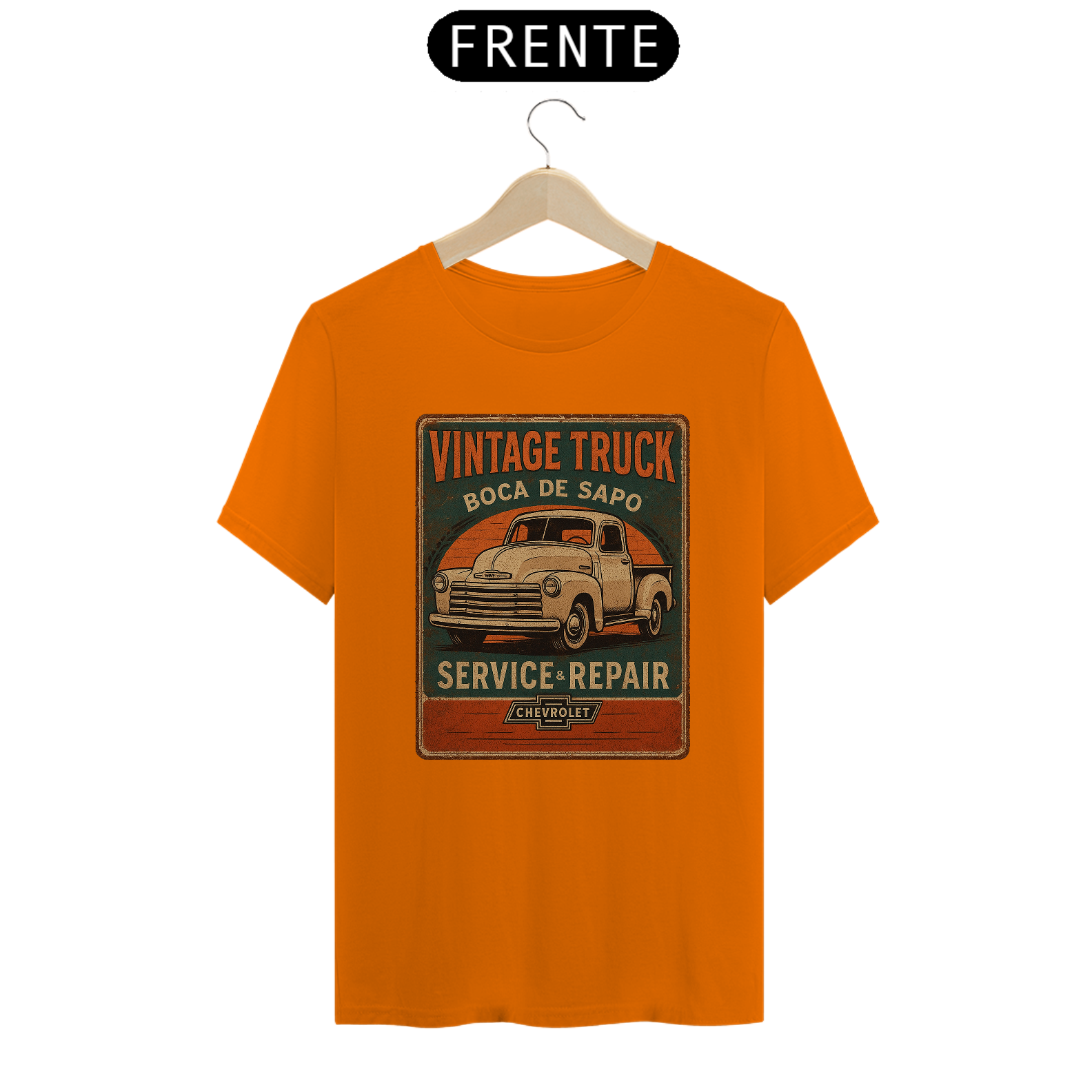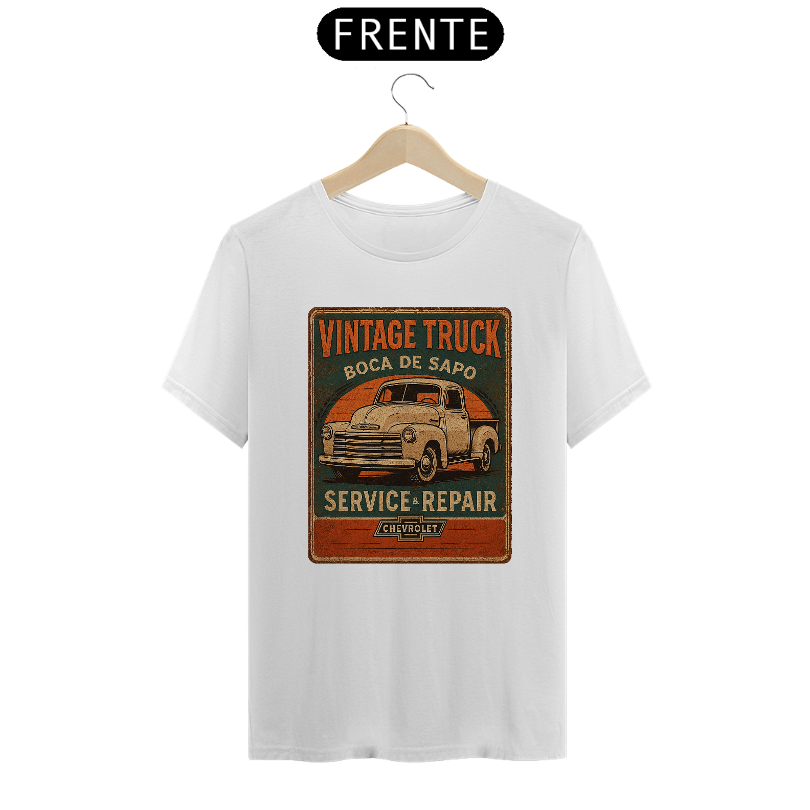 Ao redor, o visual envelhecido do letreiro "Vintage Truck – Service & Repair" reforça a pegada nostálgica, como se fosse direto da fachada de uma oficina dos anos 50.