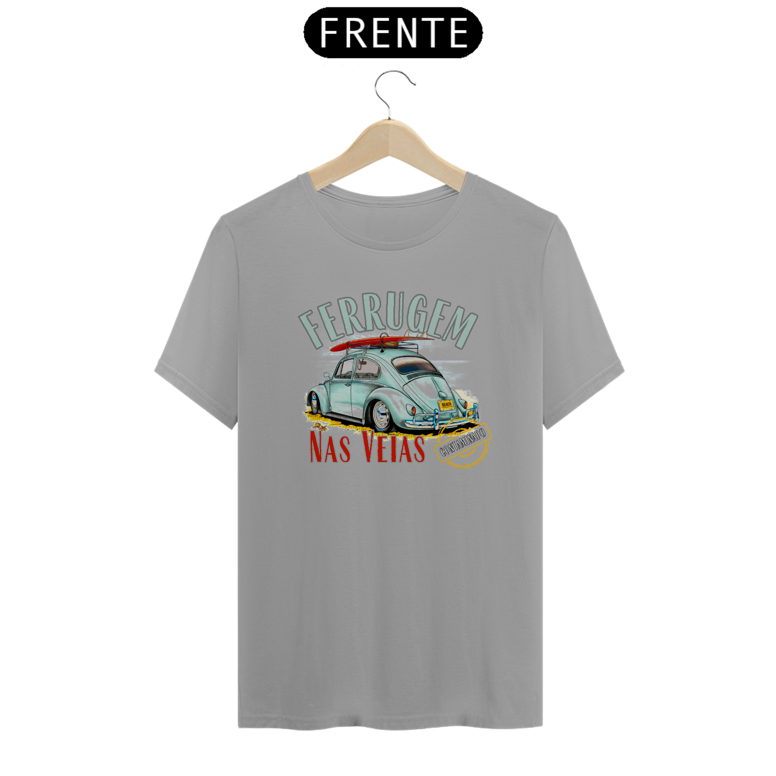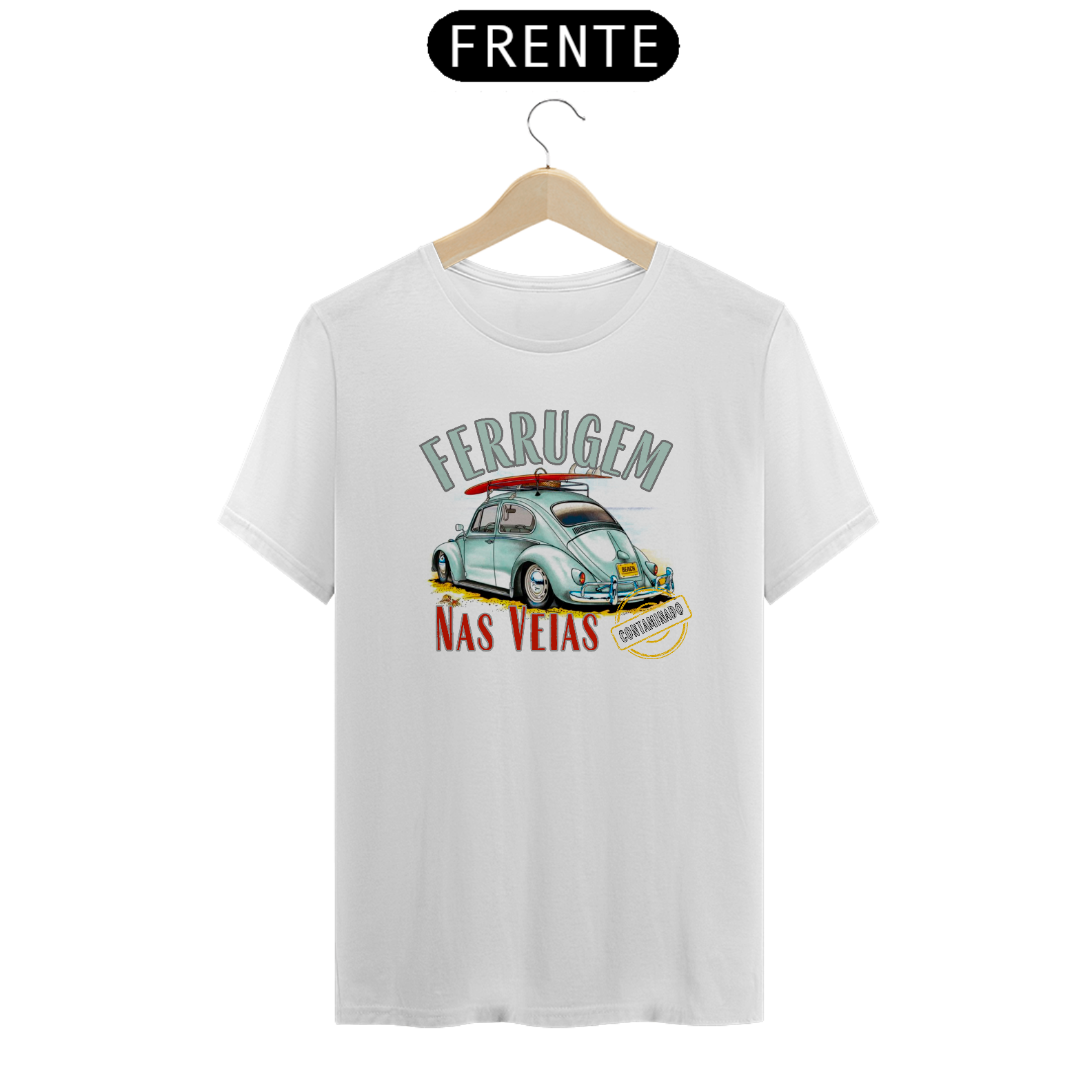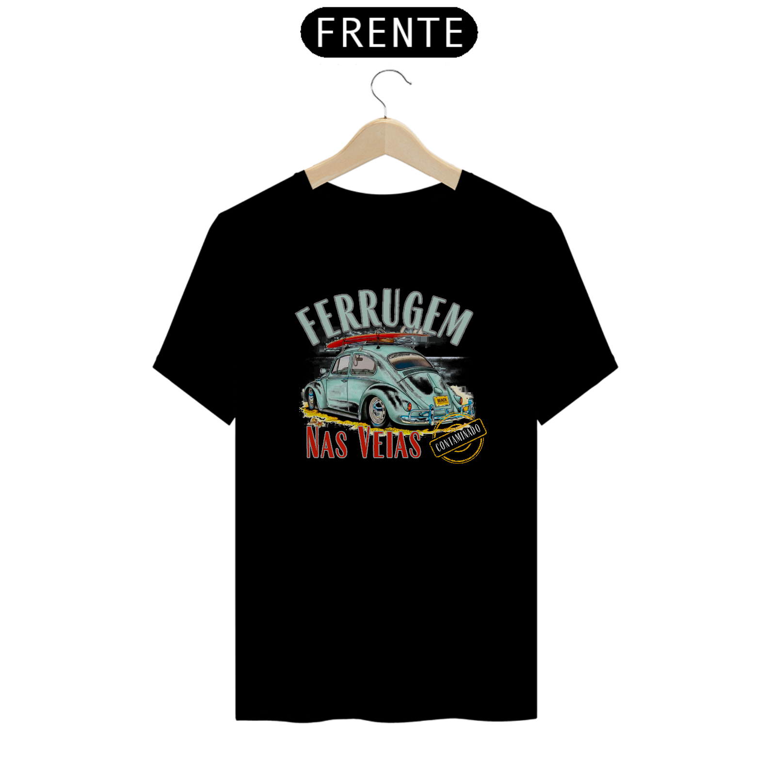 Se você é daqueles que se emociona com o som de um motor boxer e sente o cheiro de óleo queimado como perfume nostálgico, essa é a camiseta que fala por você. A Camiseta "Ferrugem nas Veias" traz em destaque o Fusca, o ícone máximo dos Volkswagen Air Cooled, em uma arte que traduz toda a essência de quem vive o estilo de vida clássico, simples e apaixonado.