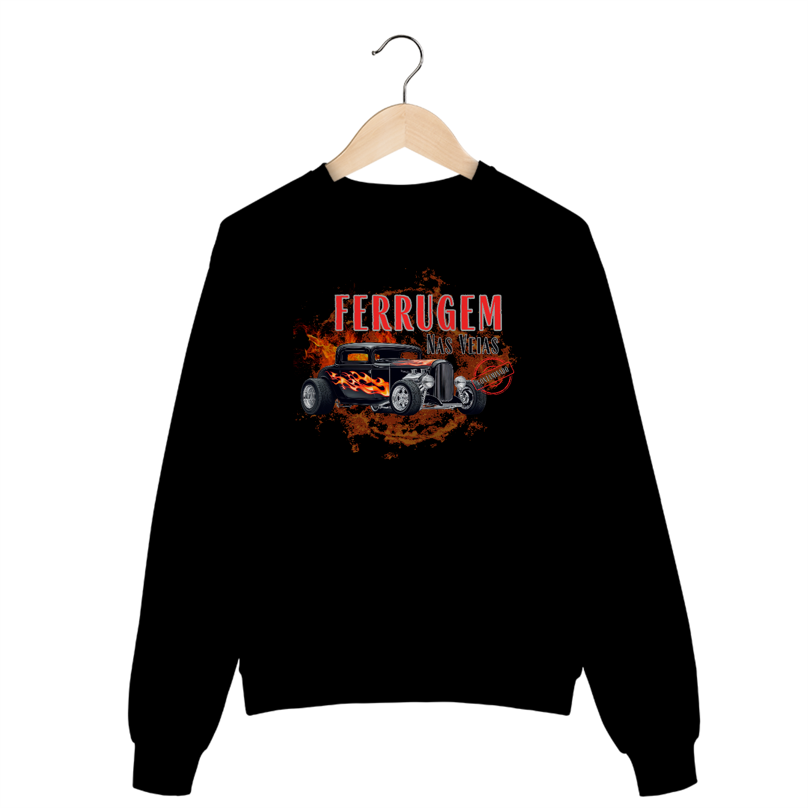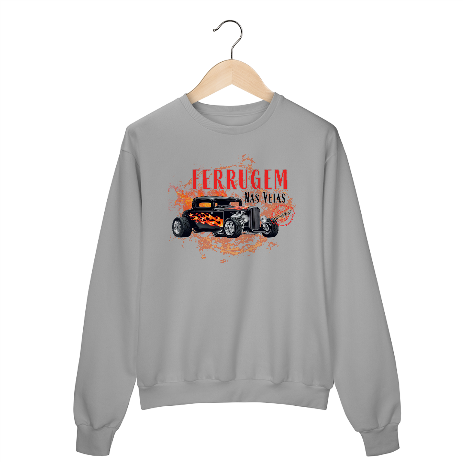 Para quem tem gasolina no sangue e ferrugem nas veias, este moletom é mais que uma peça de roupa — é um manifesto. A estampa no peito traz um Hot Rod clássico envolto em chamas e ferrugem, traduzindo em imagem a essência bruta e visceral dos apaixonados por carros antigos.