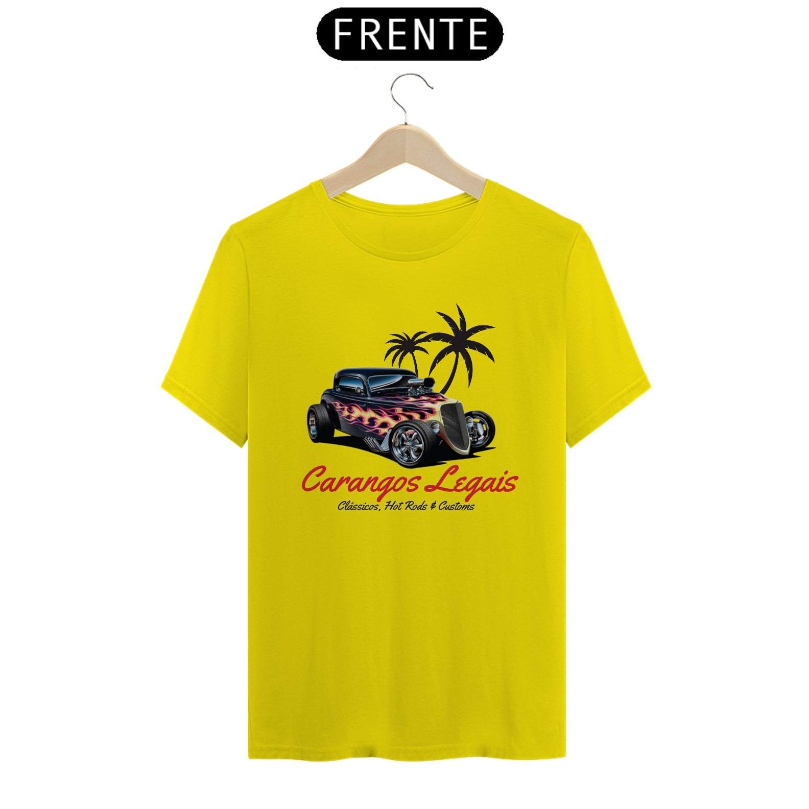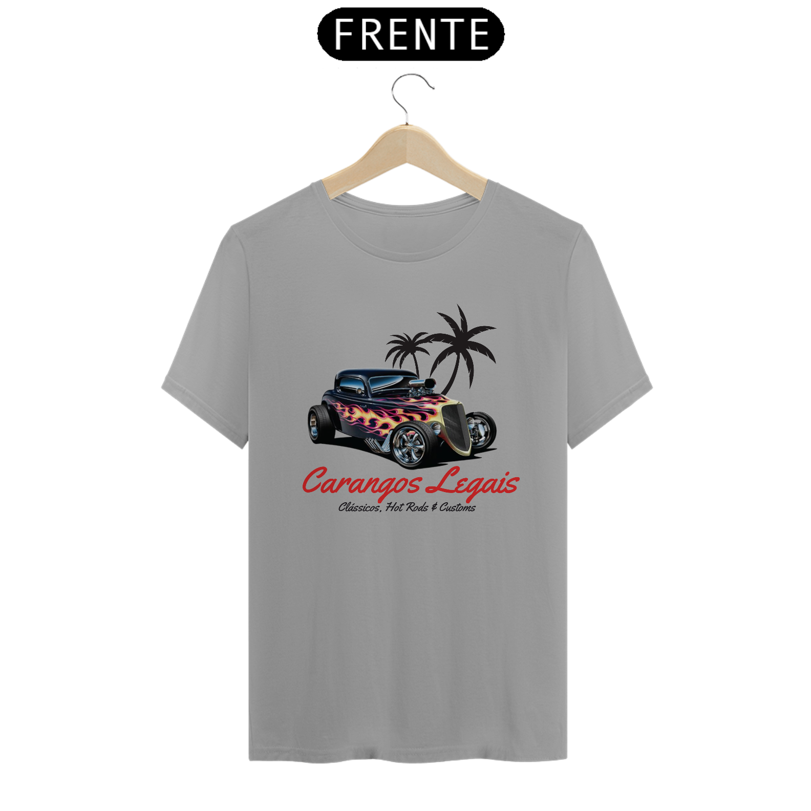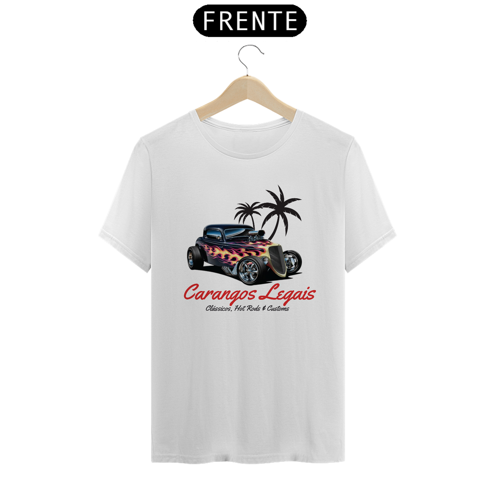 Camiseta "Carangos Legais Oficial":  Veio da Paixão  pela história automotiva, esta camiseta é um tributo à paixão e a realização de um sonho, criar uma marca ligada aos carros antigos e Hot Rods e carros antigos em Geral.