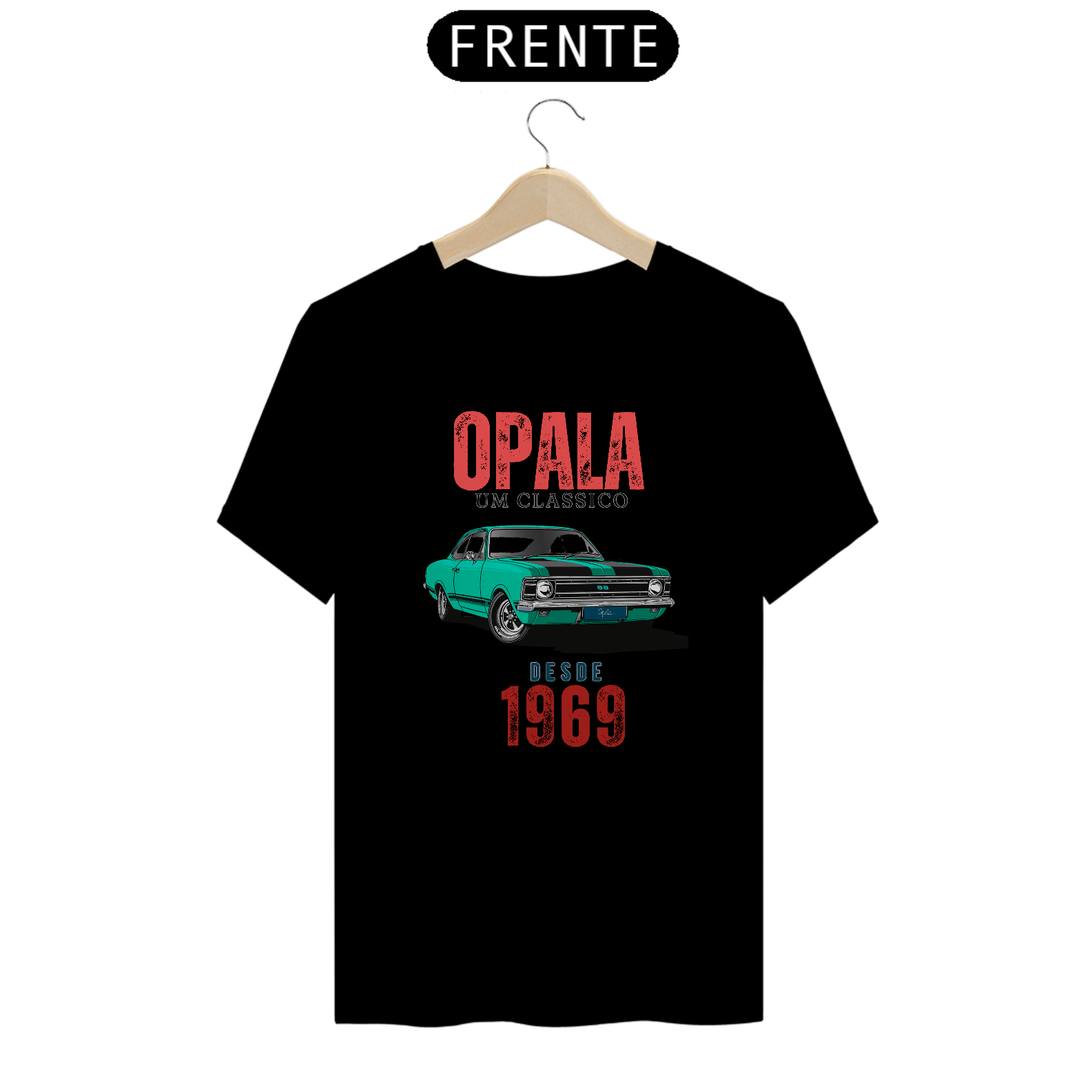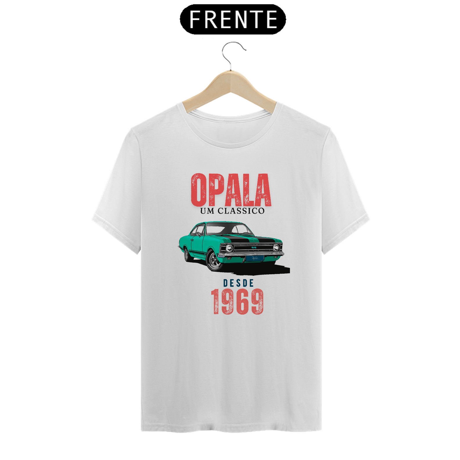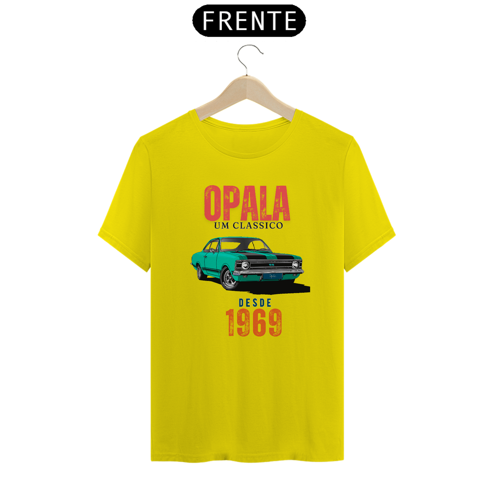 Os dizeres "Opala um Clássico desde 1969" adornam a parte frontal, destacando a data de estreia deste carro emblemático.